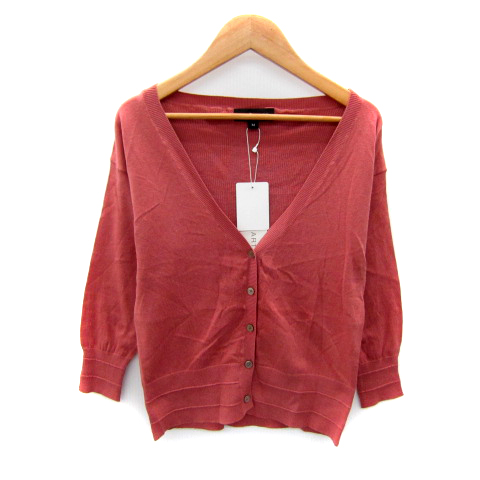 ■【中古】未使用品 ジルスチュアート カーディガン ミドル丈 Vネック 七分袖 無地 M くすみレッド /SY27 レディース