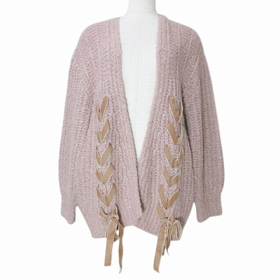 ■【中古】ジルスチュアート ニット カーディガン リボン レースアップ 長袖 モヘヤ混 厚手 ボタンレス FR ピンク X