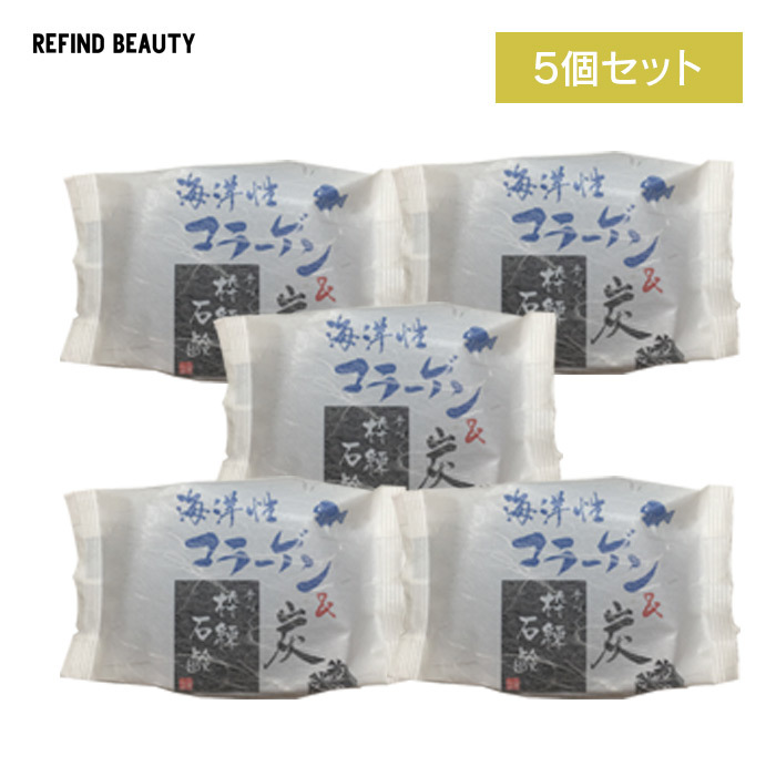 ■【5個セット 送料無料】コラーゲン&炭 石鹸 100g 枠練り 手作り しっとり 消臭 炭 コラーゲン スクラブ コラーゲン 全身 顔 うる