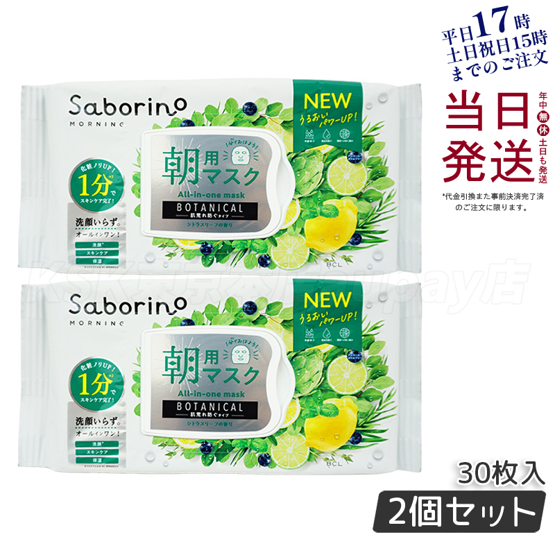 ■【2個セット】saborino 新作 サボリーノ 目ざまシート ボタニカルタイプ N 30枚入 サボリーノ シートマスク 朝用フェイスマスク しっとり