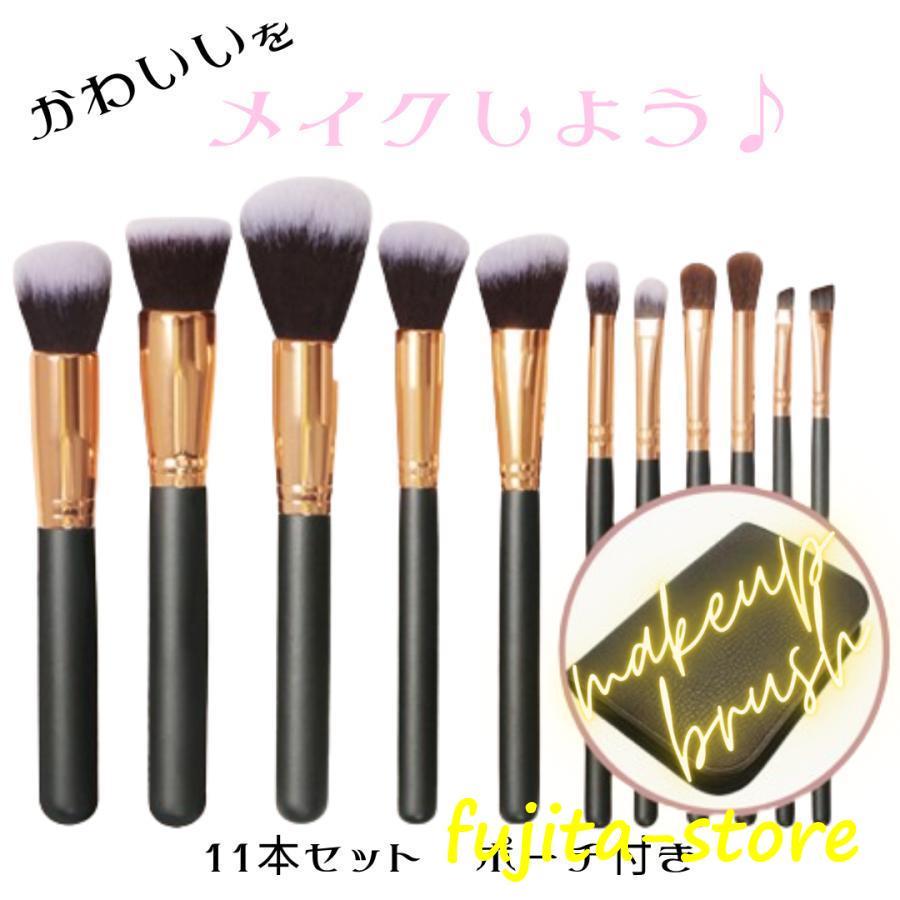 ■【爆買】メイクブラシセット プチプラ 11本 メイクブラシ おしゃれ 携帯用 化粧筆 フェイスブラシ アイシャドウ チークブラシ ポーチ付き