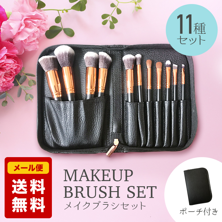 ■メイクブラシ ファンデーションブラシ 化粧ブラシ チーク アイシャドウ 11本セット メイクブラシセット 化粧筆 レザー風ポーチ付き 送料
