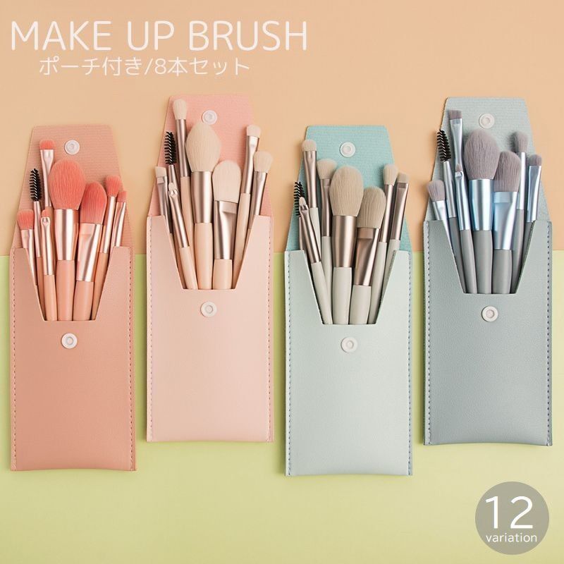 ■メイクブラシ 8本セット ケース付き メイク道具 パウダー チーク アイシャドウ リップ ファンデーション 化粧筆 おしゃれ か