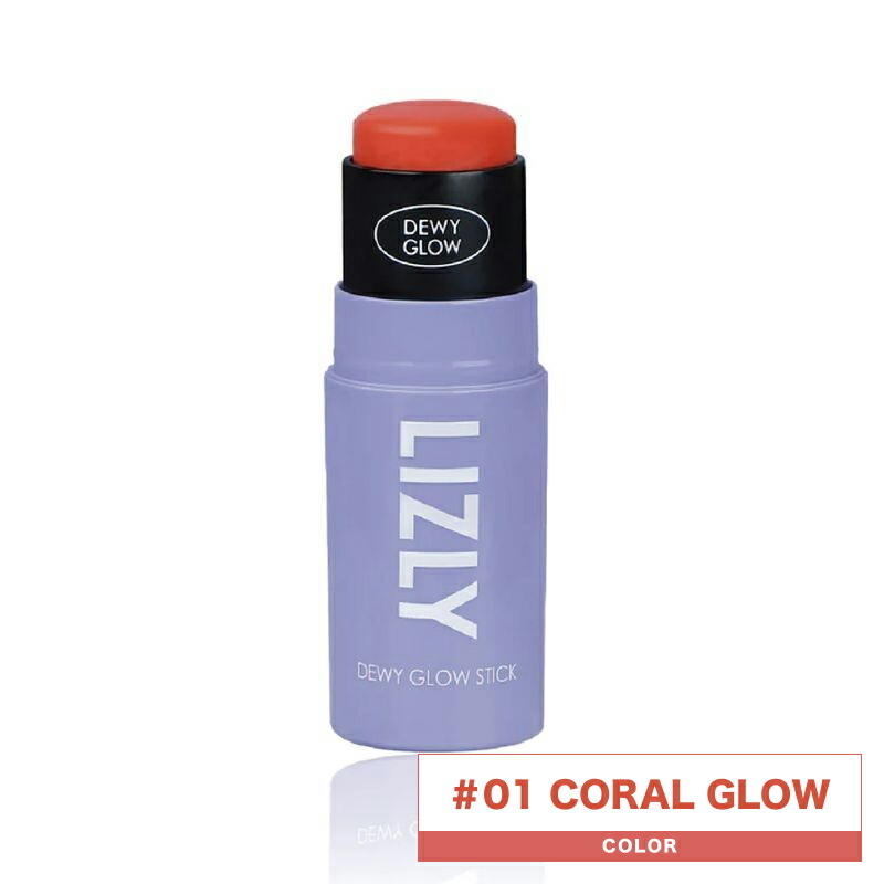 ■リズリー デューイグロースティック 01 コーラルグロー 6.5g (LIZLY 正規品 チーク ハイライト アイシャドウ スティックバーム ハイライ