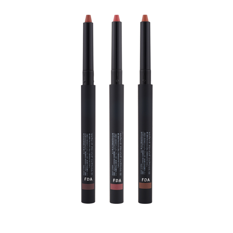 JAN 4573623430432 01 Burnt Taupe JAN 4573623430449 02 Classic Pink JAN 4573623430456 03 Orange Chai 【商品説明】 エッジを取りすぎない太めのラインとまろやかな発色で、唇の形を自在に操るリップライナーです。 唇になめらかにフィットし、あいまいな輪郭をさりげなく補正。立体感までも一度に描き、ふっくら艶めくフォルムに仕上げます。 肌と唇どちらにもなじみ、血色感を与える大人の影色にこだわったカラーバリエーション。にじみにくく保湿効果もあるため、リップカラーの色持ちを持続させます。 ●カラー ・01 Burnt Taupe / バーントトープ ・02 Classic Pink / クラシックピンク ・03 Orange Chai / オレンジチャイ 【使用方法】 3mmほど繰り出して、唇に直接塗布してください。
