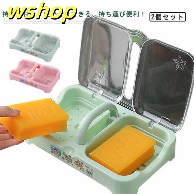 石鹸ケース おしゃれ 石鹸入れ 水切り穴付き 2個入り ダブル フタ付き 持ち手付き 石鹸収納 大きめ 石けん箱 ソープ ケース 石鹸置き ソープディッシュ 洗面用具 バス用品