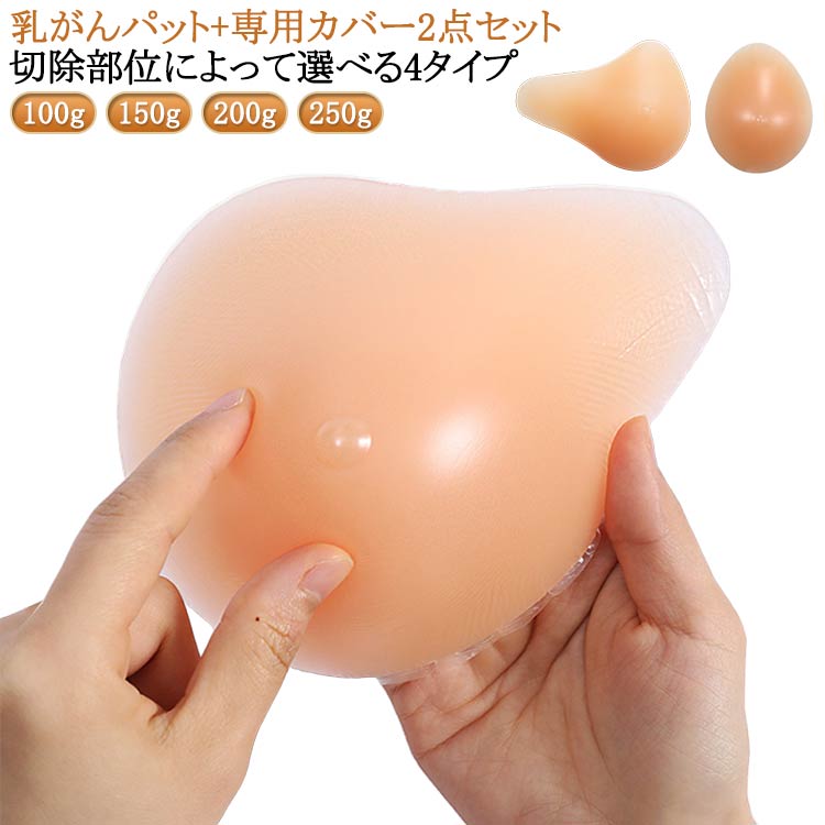 バストケア 全摘 乳癌パッド 2点セット シリコン パッド 人工乳房 保護カバー 乳がんパット+専用カバー 乳がん用 胸パット 乳がんパット+専用カバー 手術後 ブラパット バスト補正 螺旋型 三角型 ロング型 水滴型