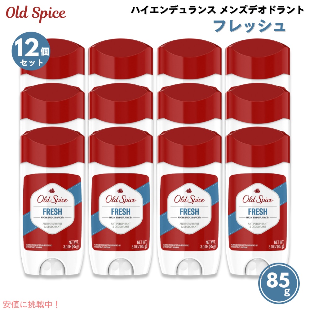 <12個セット> ブランド:Old Spice(オールドスパイス) 商品:ハイエンデュランス デオドラント 香り:フレッシュ(瑞々しく爽やかな香り) 内容量:85g(3oz) 数量:12個 ・衣服に白い跡が残りにくいインビジブルソリッド ・爽やかな香りが持続します。 【使用方法】本体下部のダイヤルを回し中の製品を出し、気になる部分に直接つけます。 *パッケージのデザインは写真と異なる場合がございます。あらかじめご了承くださいませ。