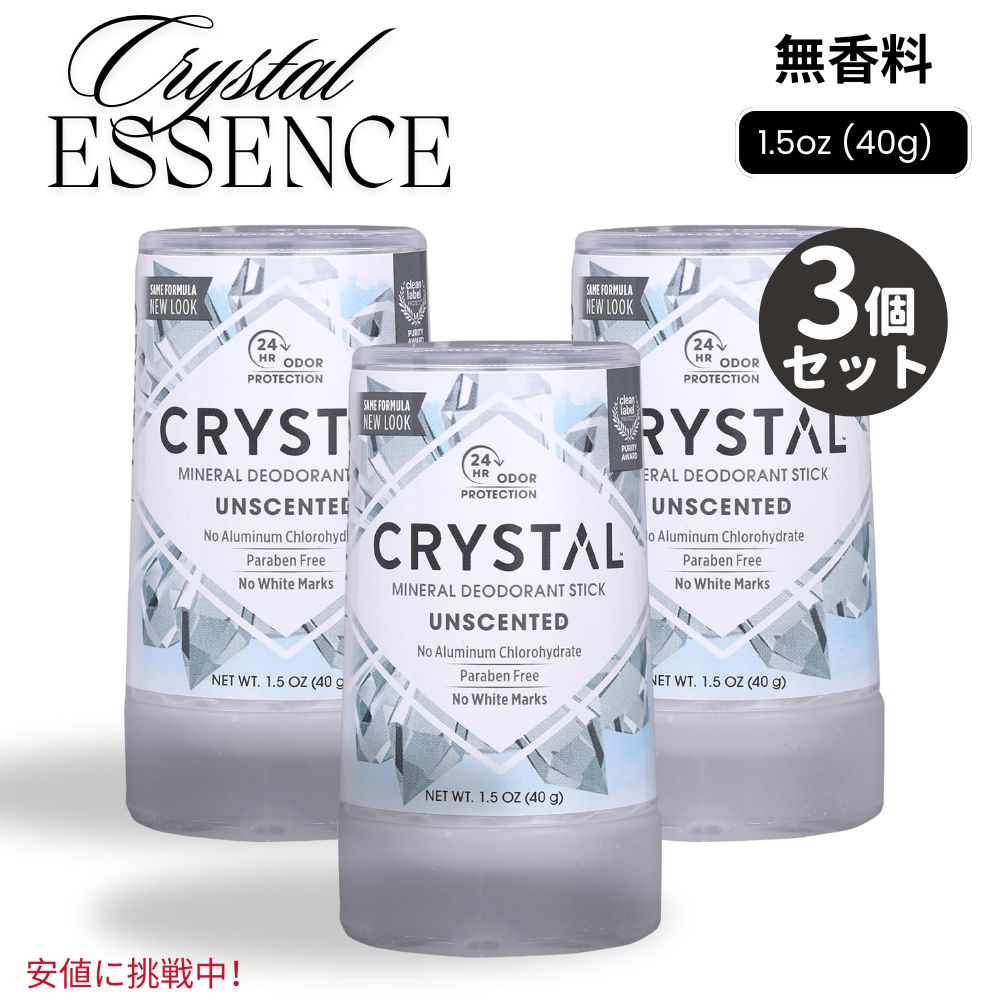 ■3個セット CRYSTAL クリスタル ミネラル デオドラント スティック 無香料 40g トラベルサイズ Mineral Deodorant Stick, 1.5 Ounce