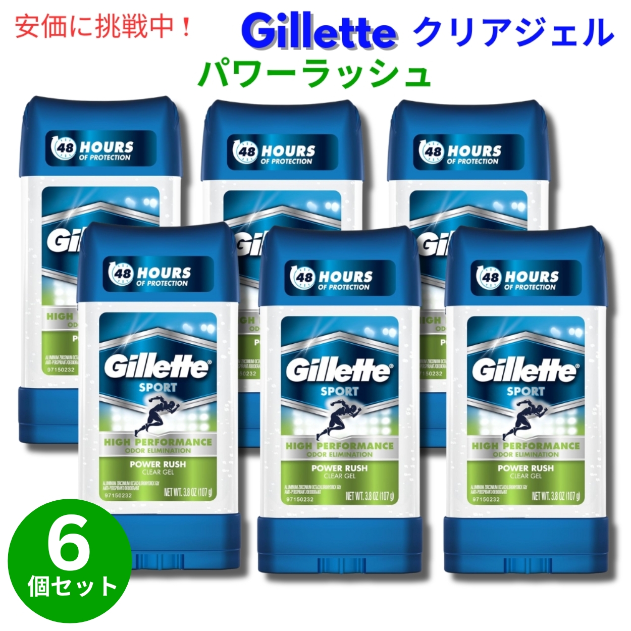 商品:Gillette(ジレット) クリアージェル デオドラント [パワーラッシュ] 内容量:107g(3.8oz) 6個