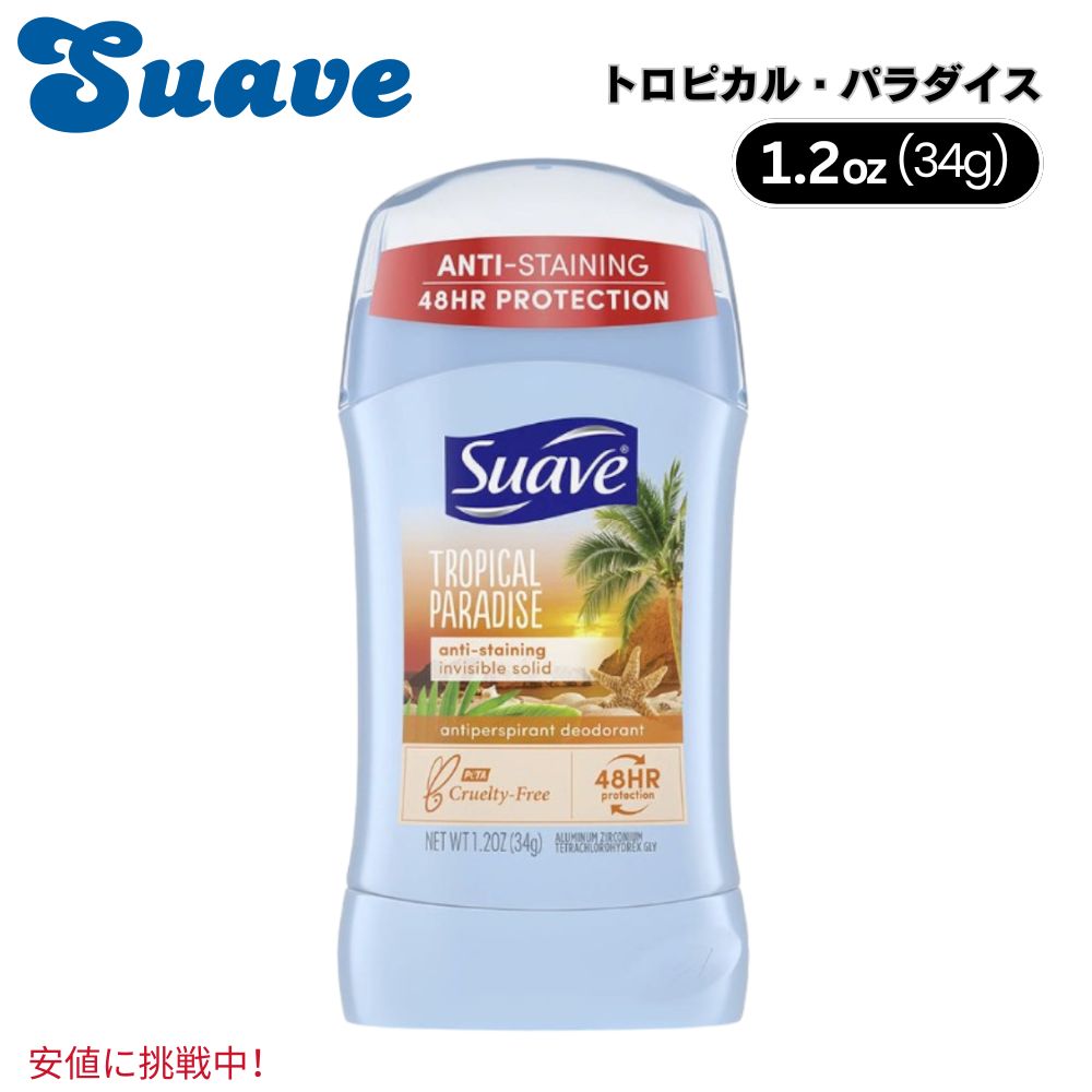 ■Suave スエーヴ Tropical Paradise Invisible Solid Deodorantト34g トロピカルパラダイス インビジブルソリッド デオドラント 1.2 Oz