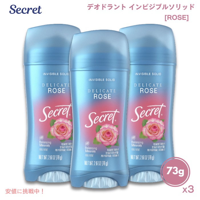 ■【3個セット】Secret シークレット デオドラント インビジブルソリッド [ローズの香り] 73g Invisible Solid Deodorant Rose 2.6oz