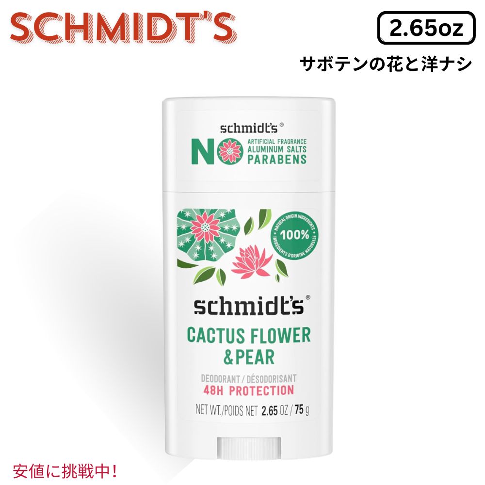 ■Schmidt's シュミッツ Aluminum-Free Vegan Deodorant 75g アルミニウムフリー ヴィーガン デオドラント サボテンの花&洋ナシ 2.65 oz