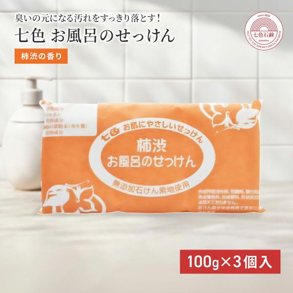 ■固形石鹸 無添加 七色石鹸 お風呂のせっけん 柿渋 100g×3個入 まるは ニオイ ケア 消臭 デオドラント 汗 加齢臭