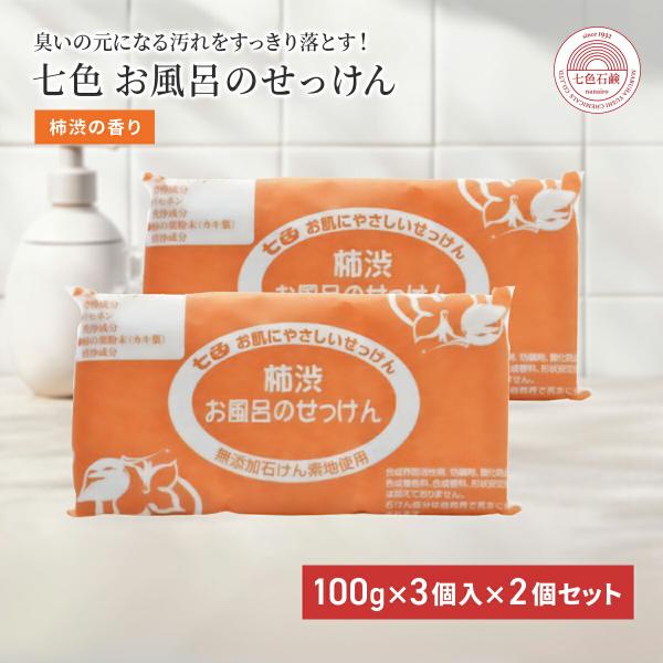 ■固形石鹸 無添加 七色石鹸 お風呂のせっけん 柿渋 100g×3個入 2個セット まるは ニオイ ケア 消臭 デオドラント 汗 加齢臭