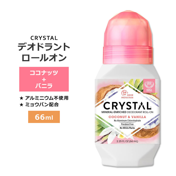 ■クリスタル ミネラル デオドラント ロールオン ココナッツ & バニラ 66ml (2.25floz) CRYSTAL Mineral Deodorant Roll-On Coconut & Vanill
