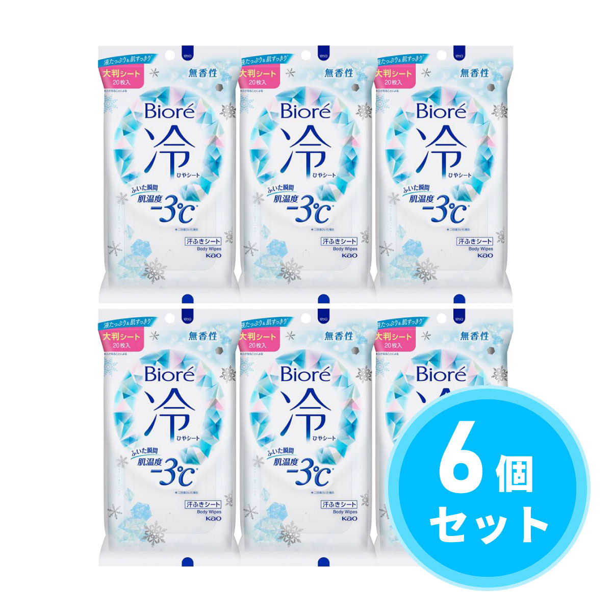 ■【まとめ買い】花王(kao) ビオレ 冷シート 無香性 20枚×6個セット ボディシート 制汗シート 汗拭きシート デオドラント 無香料 冷却シ