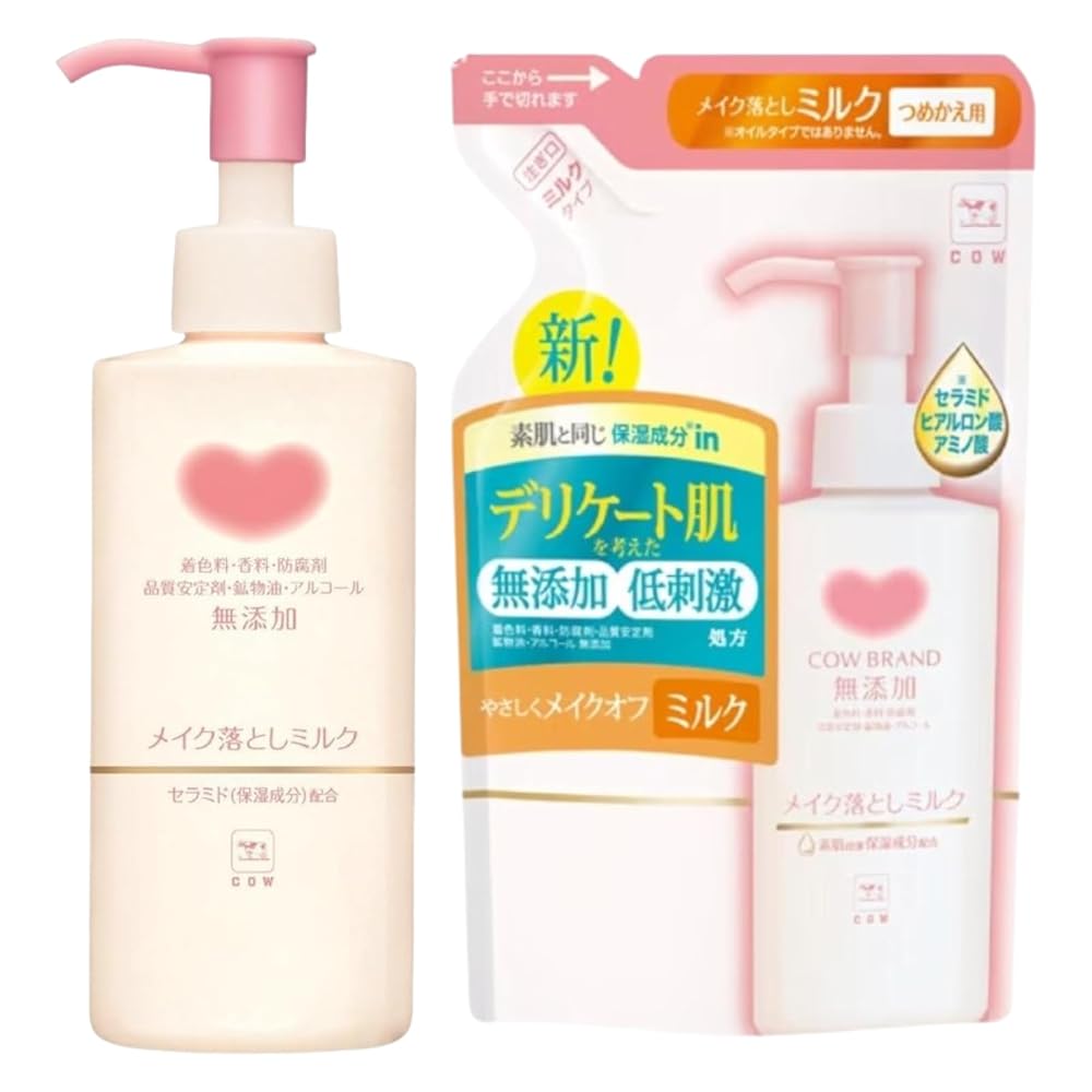 ■カウブランド 無添加 メイク落としミルク ポンプ 詰め替えセット (本体1個、替1個)