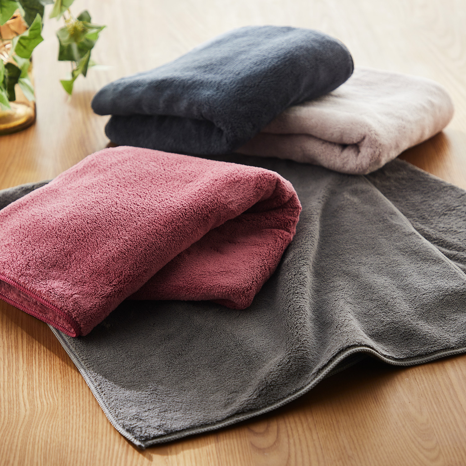 マイクロファイバーが驚きの吸水濡れた髪をふわっと包むだけで水分をさっと吸水。ドライヤー時間の短縮にもなめらか優しい触り心地で思わずうっとり表面のパイルをカットする加工で、なめらかで優しいタッチのタオルに仕上げました。思わずうっとり、ふわふわの触り心地です。
