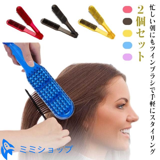 ■2個セット ストレート ツインブラシ 挟む 豚毛 ヘアブラシ ヘアーブラシ ストレートブラシ ヘアスタイリング 癖毛 くせ毛 前髪 縮毛 美