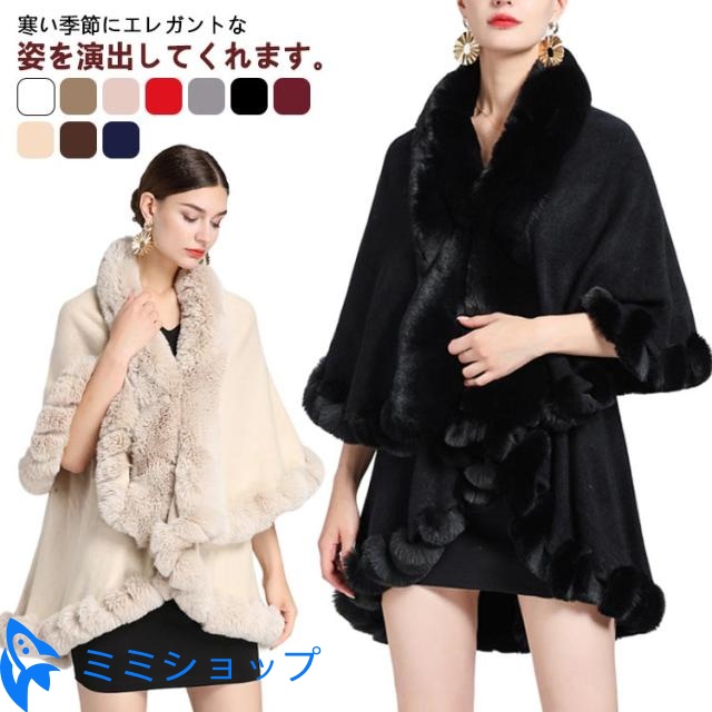 ■【wshop 】真冬 レディース マントコート ケープ アウター フェイクファー ポンチョコート ウールコート 30代 羽織 ケープコート コート