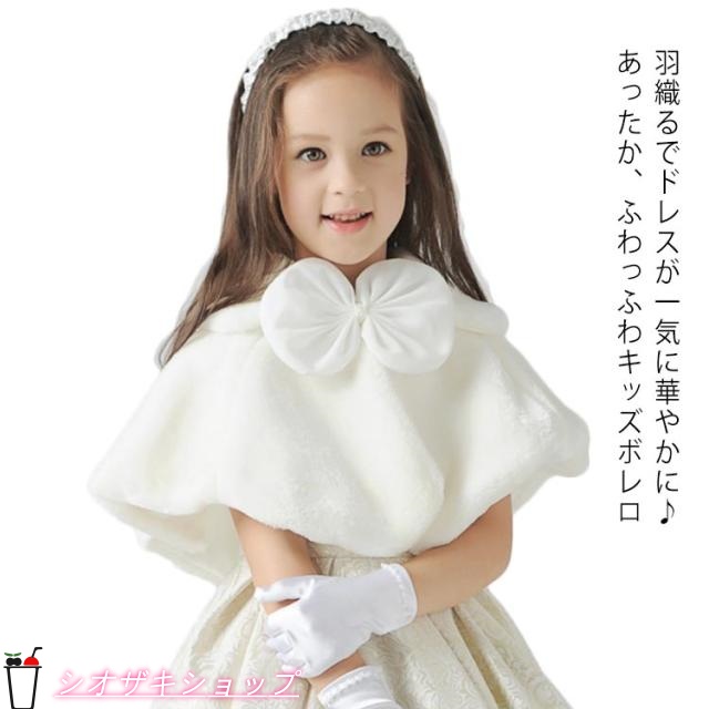 【送料無料】キッズ フォーマルショール フェイクファー お出かけ ボレロ 女の子 秋冬 リボン 白 子供 もこもこ 子供用 ケープ 子供服 キッズフォーマル お呼ばれ あったか 羽織物 カーディガン ドレスショール 発表会 ピアノ 入学式 結婚式 子供