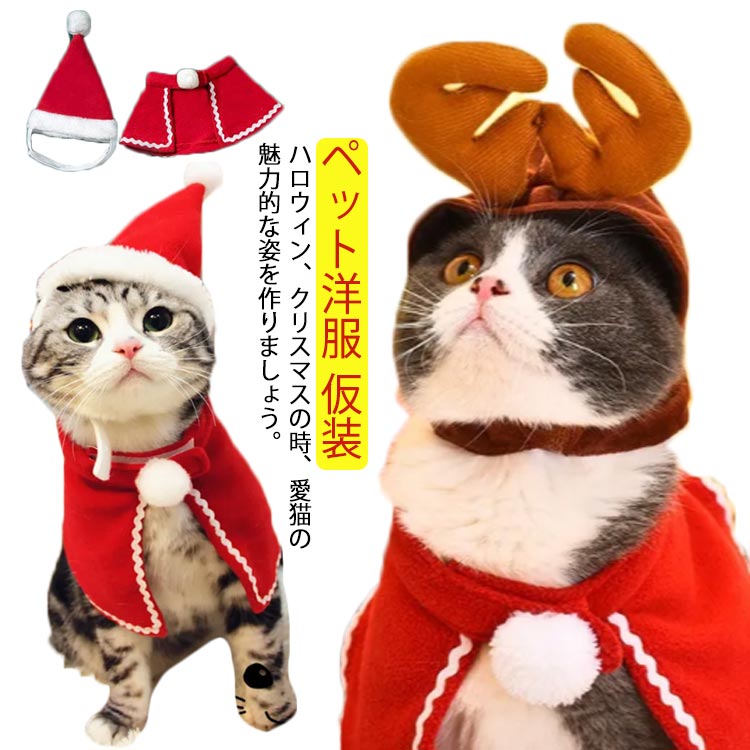 ■猫 犬 ヘッドバンド 帽子 ヘアバンド マント ケープ マフラー トナカイ サンタ帽 ぼうし ペット用 犬用 猫用 ドッグウェア キャットウェ