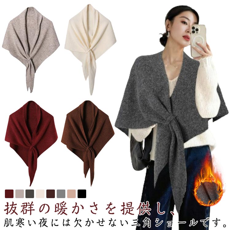 ■ストール レディース ニット カーディガン 肩掛け スカーフ 三角ショール ケープ 柔らかい マフラー 無地 スカーフショール トップス 春