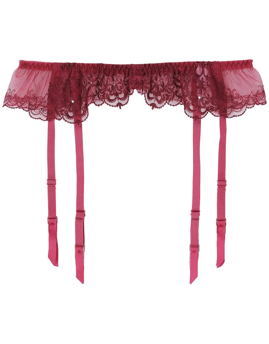 女性らしい、繊細さと高級感のあるレースに、きらめくラインストーンを添えて輝きをプラス。チュールレースでゴージャスに仕上げたガーターベルトです。