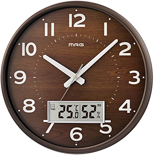 MAG(マグ) 掛け時計 壁掛け時計 電波時計 アナログ 温度計 湿度計 温湿度計 おしゃれ かわいい インテリア 北欧 木目調 ウッディ 直径35.5? 夜間秒針停止 ブラウン ゴーフル W-776 BR-Z ノア精密
