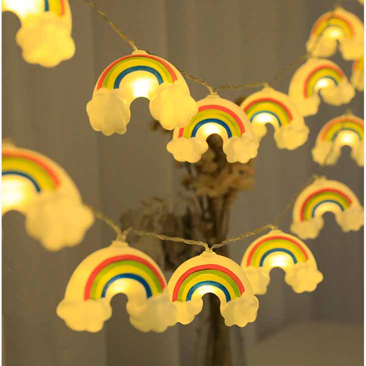 商品仕様 【長さ】3m 【球数】20球 【球のサイズ】7.5cm×5.5cm 【材質】プラスチック 【電源】USB給電 3メートルの長さに20個のかわいい虹モチーフがお部屋を彩ります。 クリスマスツリーの飾りつけや窓辺、壁面などに取り付けて素敵な雰囲気を演出しましょう。 普段のインテリアにもぴったりなLEDライトで、USB接続なので簡単に電源を確保できます。 デスクやテーブルの上に飾って、リラックスできる癒しの空間を作り上げることもできます。 また、プラスチック製なので軽量かつ丈夫で、取り扱いも簡単です。お子様のいるご家庭でも安心してお使いいただけます。 クリスマスやパーティーなど、様々なシーンで活躍すること間違いなしです。 ぜひ、お部屋の雰囲気を一新し、魔法のような光の世界を創り出しましょう! オーナメント ゆめかわ 虹モチーフ ランプ インテリア DIY イベント パーティ 可愛い かわいい デコレーションライト イルミネーションライト 雲