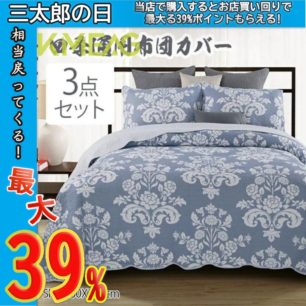 ベッドカバー ベッドスプレッド 230×250cm マルチ カバー キルト おしゃれ ダブル 綿100% 枕カバー 寝具カバーセット 3点セット 四節適用 優しい肌触り