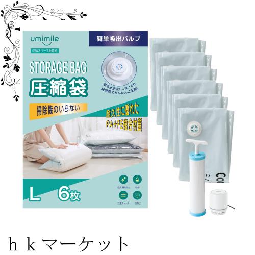 ■Umimile 圧縮袋 6枚セット 80×56cm 掃除機不要 電動ポンプ付き 衣類圧縮袋 布団圧縮袋 厚手 高密封 漏れなし 羽毛布団/毛布/収納 掃除機