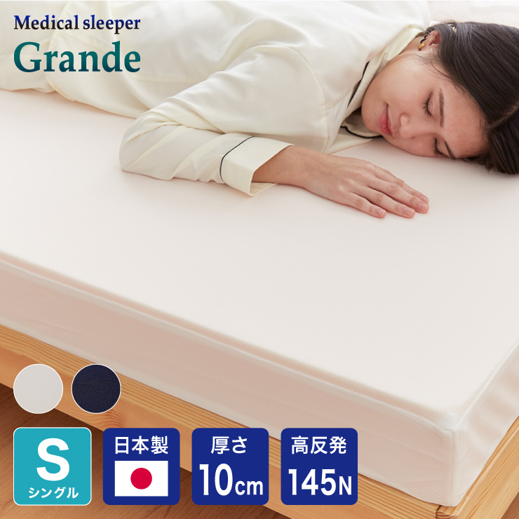 ■マットレス 日本製 メディカルスリーパー グランデ シングル 一枚もの 極厚 高反発 硬め 国産 ウレタン ニット 体圧分散 145N(代引不可)