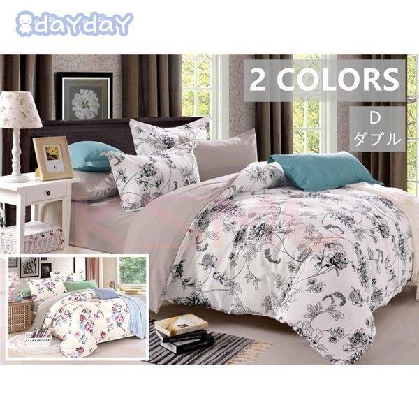 布団カバー ダブル 4点セット 寝具セット 枕カバー 掛け布団カバー ボックスシーツ 寝具カバー おしゃれ 抗菌 防臭 防ダニ 洗える 花柄
