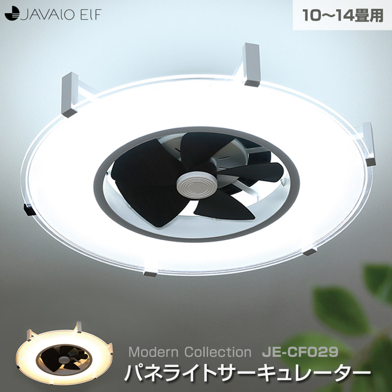 ■パネライトサーキュレーター JE-CF029 10〜14畳用 LEDシーリングファン シーリングライト LEDライトの中にサーキュレーターファンが内蔵