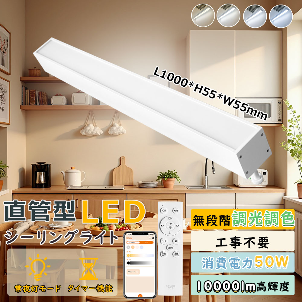 商品名:LEDシーリングライト 長方形 定格消費電力:50W 全光束:10000lm 適用畳数:〜15畳 入力電圧:AC85V〜265V 50/60HZ 色温度:無段階調光調色 演色指数(CRI):>85Ra 設計寿命:50000h 製品サイズ:L100cm×W5.5cm×H5.5cm 製品重量:約1.4kg スイッチタイプ:壁スイッチ、スマートフォン、リモコン操作(リモコン付き) 製品保証:1年保証 検索キーワード( 商品説明ではありません ) ダクトレール用 逆富士型 LEDベースライト 調光調色 40w 2灯 一体型 逆富士型照明器具 レールライト 逆富士型蛍光灯 ledライト LED蛍光灯 40W型2本相当 40W型 ledベースライト逆富士型 led蛍光灯 40w型2灯式 器具一体形 高輝度 シーリングライト 直管型 長方形 led照明器具 器具一体型 べース照明 一体型照明 LED照明器具 器具一体型led蛍光灯 調光調色 直管型led蛍光灯 50W LED直管蛍光灯 ダクトレール用 ライト LEDベースライト 調光調色 リモコン操作 アプ