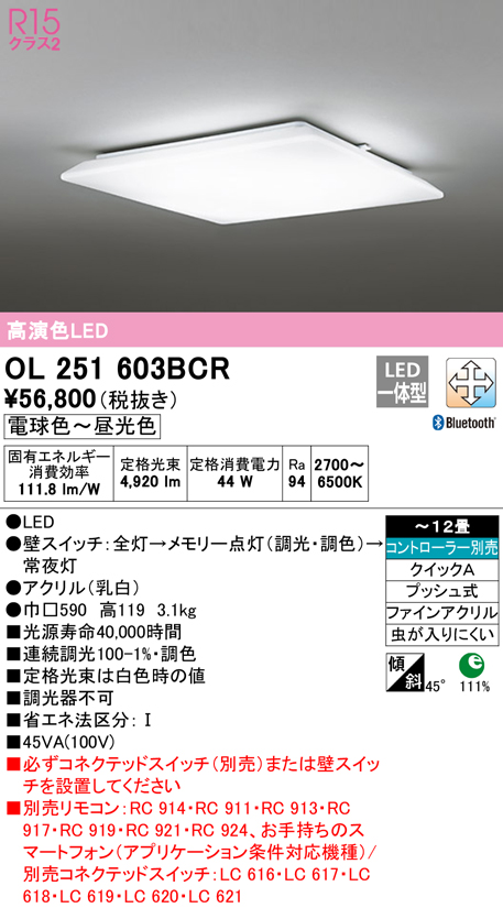 ◆メーカー:オーデリック ◆品名:シーリングライト LED一体型 電球色〜昼光色 Bluetooth対応 ◆品番:OL251603BCR ◆器具光束(lm):4000〜5000 ・商品スペックについては商品画像をご参照くださいませ。 ◆沖縄県は配送不可となります。ご了承下さい。 ※「発送先が北海道・沖縄・離島地域」に該当するお客様は別途送料がかかる場合がございます。 システムの都合上、ご注文時には送料が加算されておりませんが、 ご注文完了後に当店よりメールにて追加送料の承諾が取れてから手配を進めさせていただきます。 「発送先が北海道・沖縄・離島地域」に該当するお客様で ご注文前に送料を知りたい方はお問い合わせいただけましたらご案内いたしますので、 お気軽にお申し付けください。