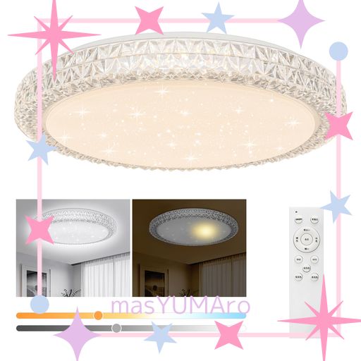 ■ELEKEED シーリングライト 6~10畳 4200LM おしゃれ LEDライト キラキラ 調光調色 リモコン付き 豆電球常夜灯 おやすみタイマー メモリ機