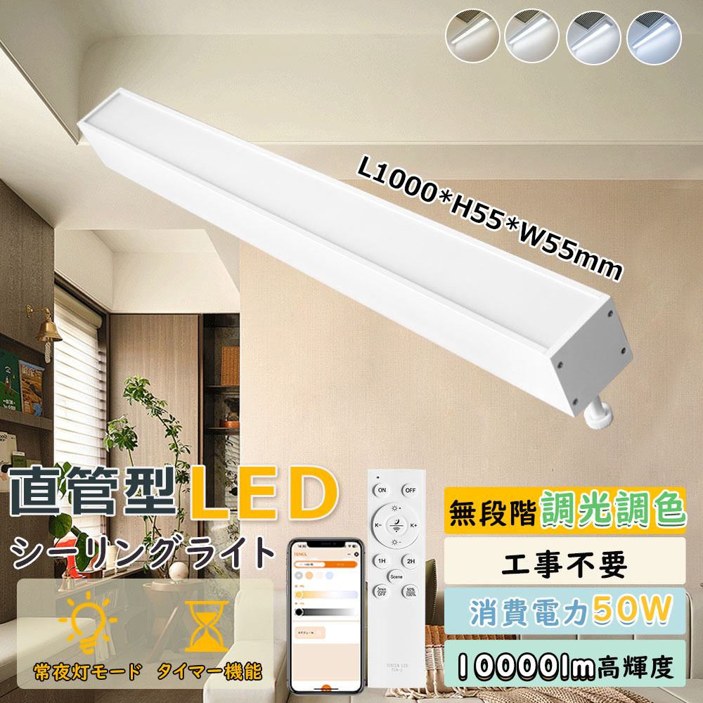 ■シーリングライト LED 調光 調色 リモコン付き 50W 高輝度10000LM LED シーリングライト 長方形 常夜灯 タイマー付き 引っ掛け ダクトレ