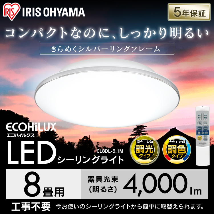 ■シーリングライト 8畳 調色 調光 メタルサーキット モールフレーム 照明器具 天井照明 LED CL8DL-5.1M アイリスオーヤマ 送料無料