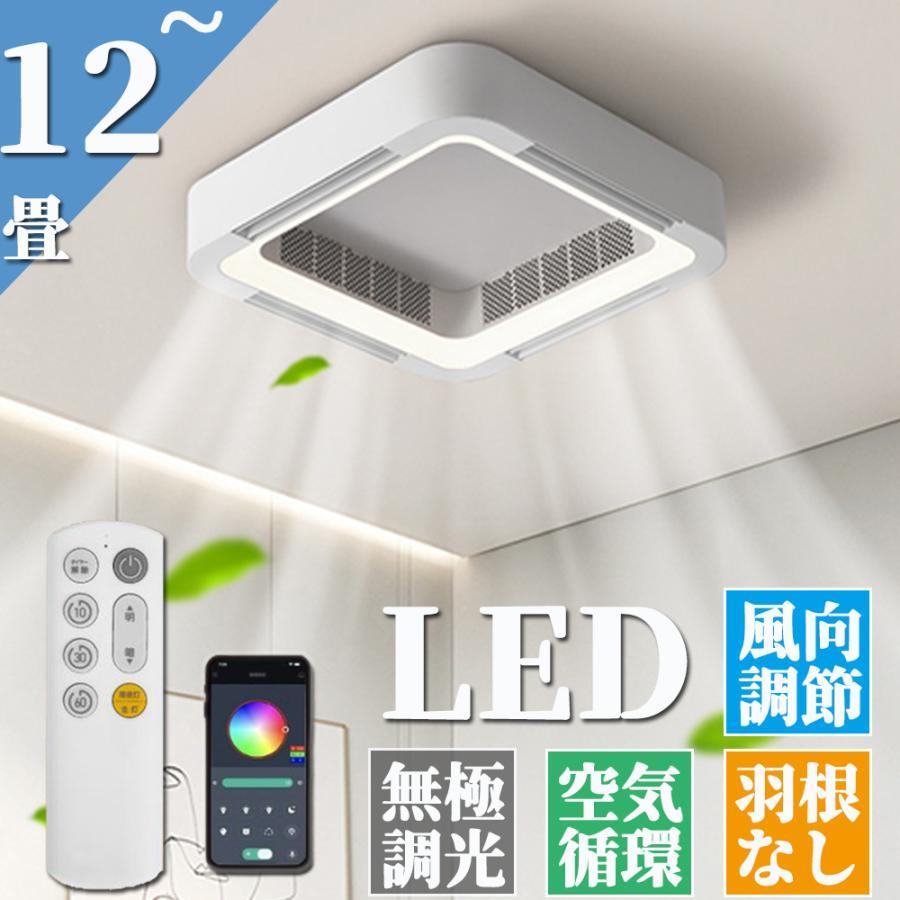■シーリングファンライト シーリングライト LED おしゃれ 薄型 スマホ操作 扇風機 羽なし 空気循環 静音 6段風量 風向調節 8?12畳対応 天