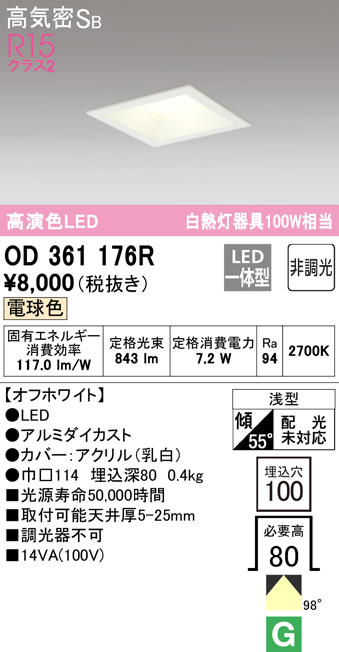 ■オーデリック OD361176R ダウンライト LED一体型 電球色 非調光 高気密遮音SB形 ODELIC