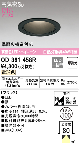 ■オーデリック OD361458R ダウンライト LED一体型 電球色 非調光 高気密遮音SB形 ODELIC