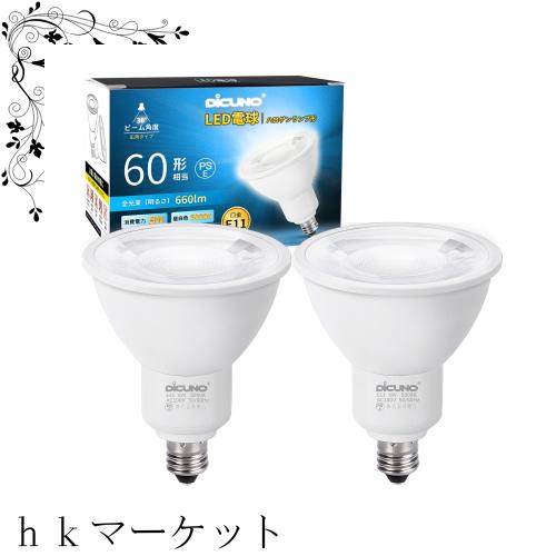 ■DiCUNO E11口金 LED電球 スポットライト 昼白色 6W 60W形相当 5000K 660lm LEDスポットライト 密閉器具対応 広角タイプ AC100V 非調光 PS