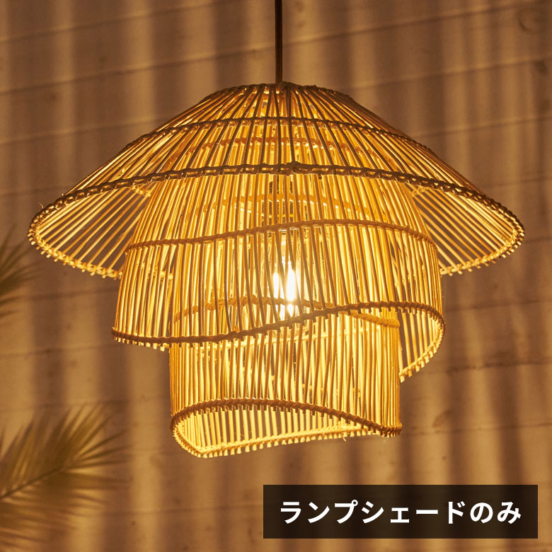 ■対応ソケット:Aタイプ ■サイズ(cm) 約 W 45 × D 45 × H 35 ※多少サイズは前後します。 ■重量 約 0.9 kg ■素材 ラタン、スチールフレーム ■生産国 インドネシア(バリ島) ■備考 ※電球は別売りです。(熱くならないLED電球推奨) ※安全のため、電球はシェードを重ねた後、天井に設置する直前に取り付けるようにして下さい。 ■ご注意 ※注意事項は<商品説明>に掲載しておりますので、ご確認お願いいたします。
