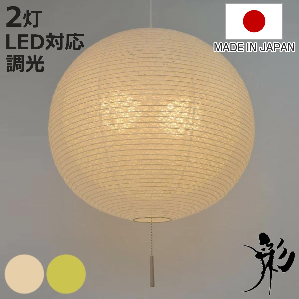 ■ペンダントライト 2灯 60cm 提灯 ツインバナナ 和紙照明 日本製 彩光デザイン ( 照明 LED 和室 和風 和風照明 寝室 紐付き 引き紐 吊り