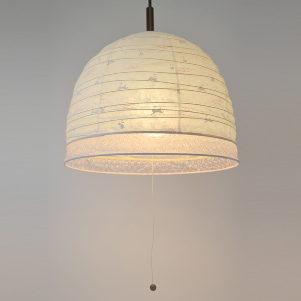 ■ペンダントライト 2灯 和紙 うさぎピンクボーダー 日本製 ペンダントランプ ( 照明 LED 和室 和風 和風照明 寝室 紐付き 引き紐 吊り下