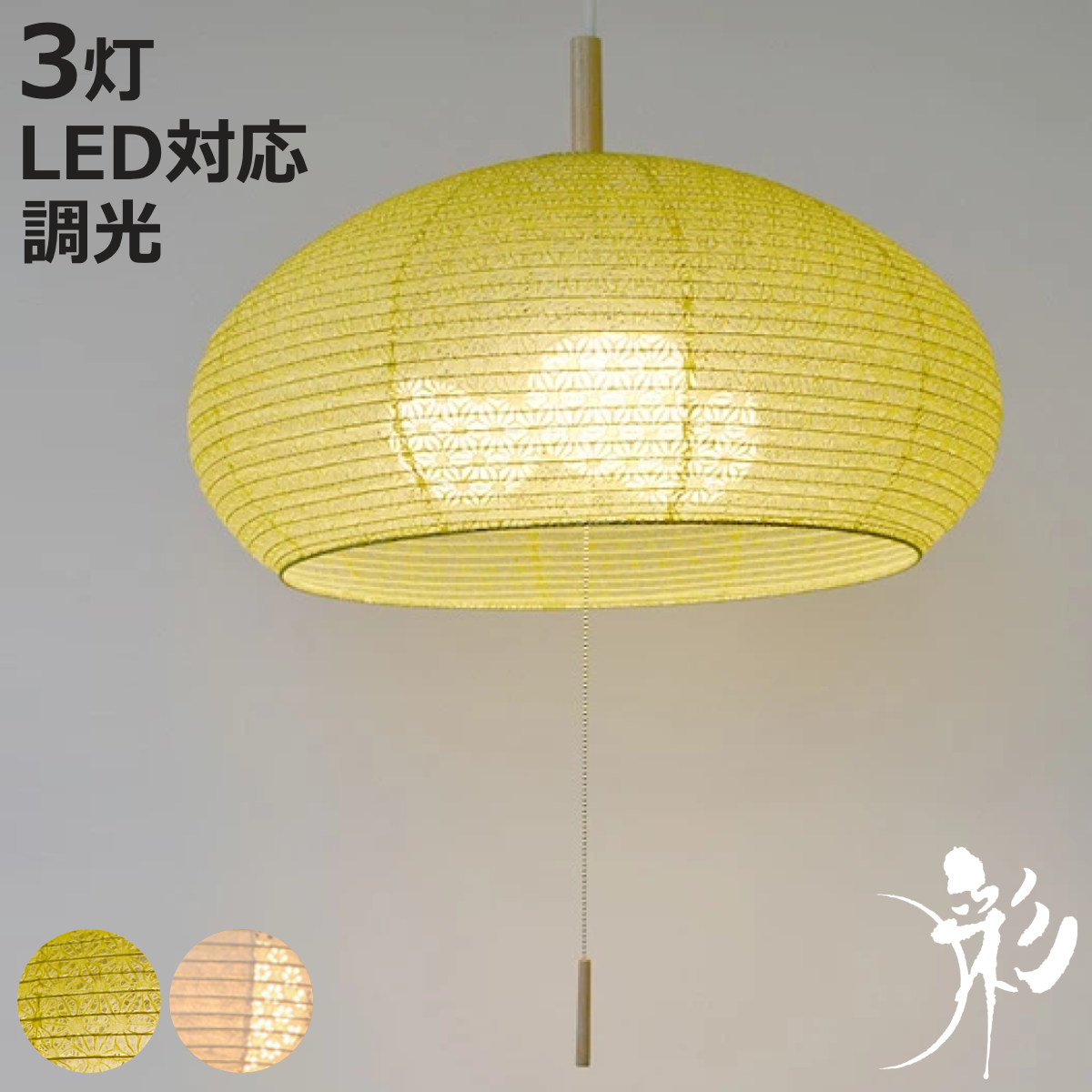 ■ペンダントライト 3灯 dome 麻葉萌葱 揉み紙×小梅白 日本製 和風 天井照明 ( LED対応 和紙 透かし 模様 照明 ライト 照明器具 リビング