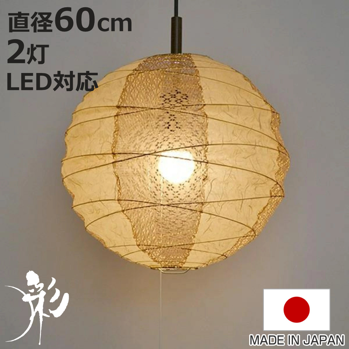■ペンダントライト 2灯 cross 雲龍ベージュ×小梅茶 直径60×高さ57cm 和紙照明 日本製 和風 天井照明 ( 照明 天井 和風照明 丸 吊り下げ